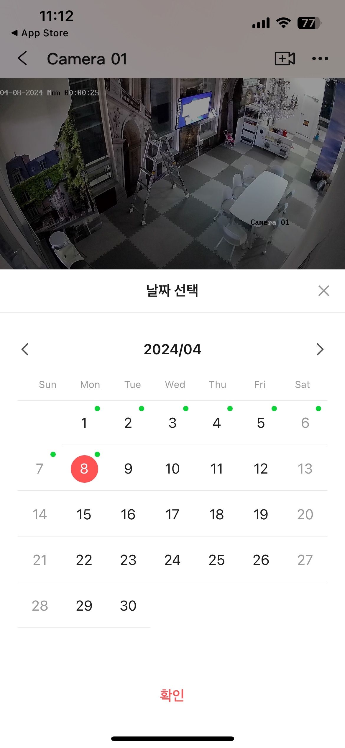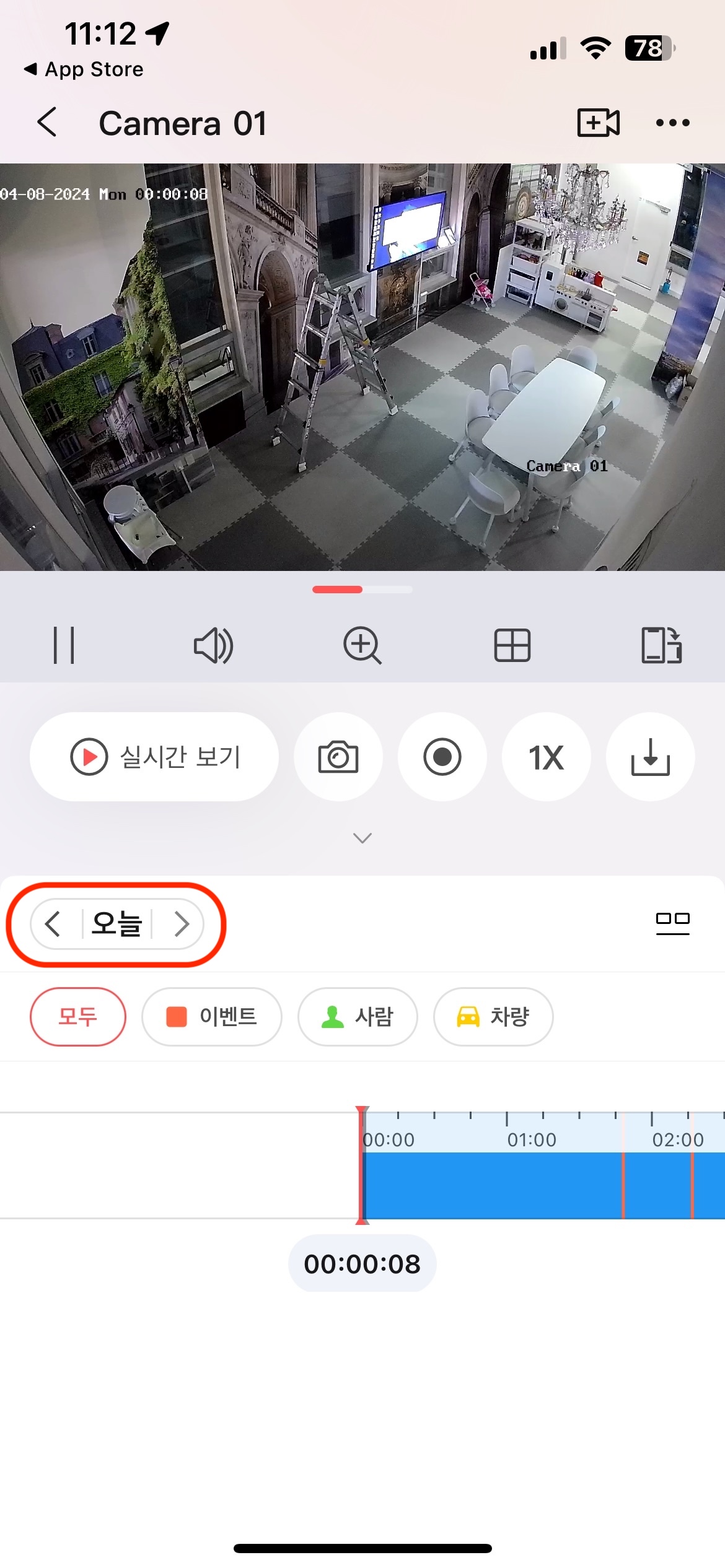 빨간색으로 표시된 부분을 터치하여 CCTV 화면 (실시간) 진입